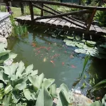 Os quartos têm vista para o jardim e apresentam confortos como ferro de passar roupas. Tem casas de banho partilhadas com secador de cabelo e bidé em algumas unidades.